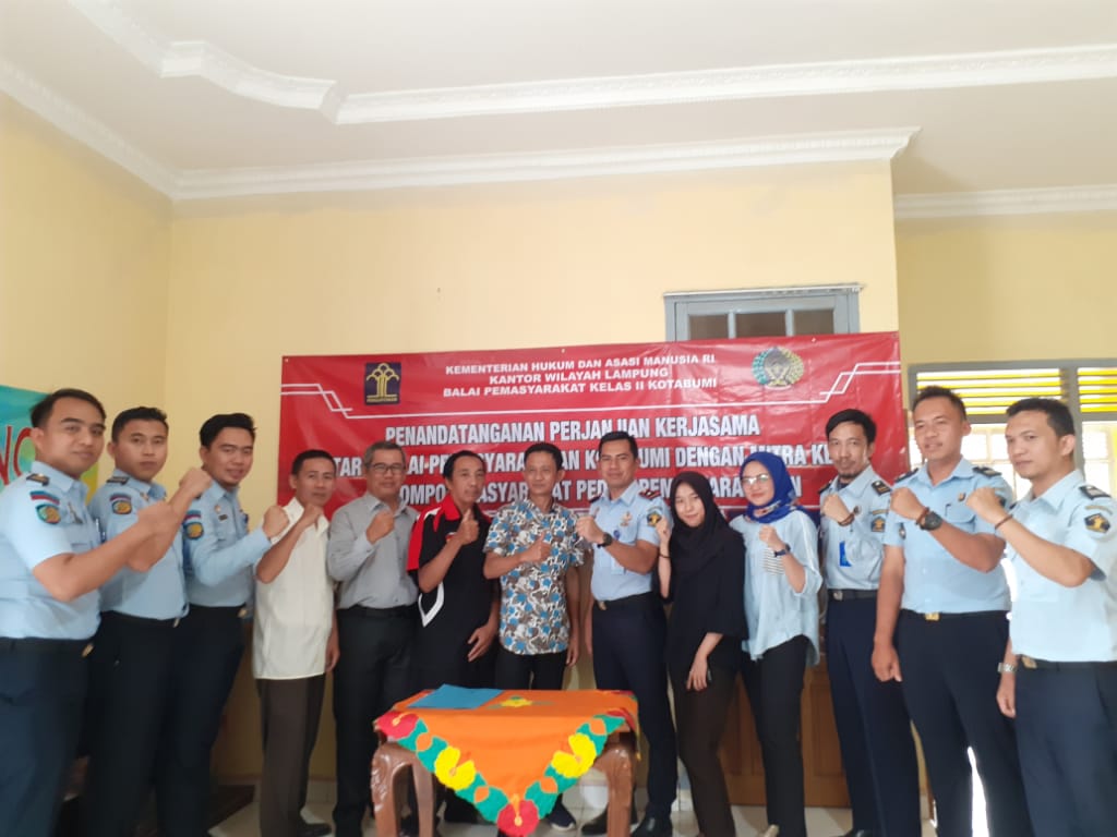 “Yang mana telah dilaksanakannya penandatanganan perjanjian kerja sama antara Balai Pemasyarakatan Kotabumi dengan Mitra Kerja Kelompok Masyarakat Peduli Pemasyarakatan di kantor Lembaga Bantuan Hukum Menang Jagad. Dan kami siap untuk kerja samanya,” Jelasnya.
