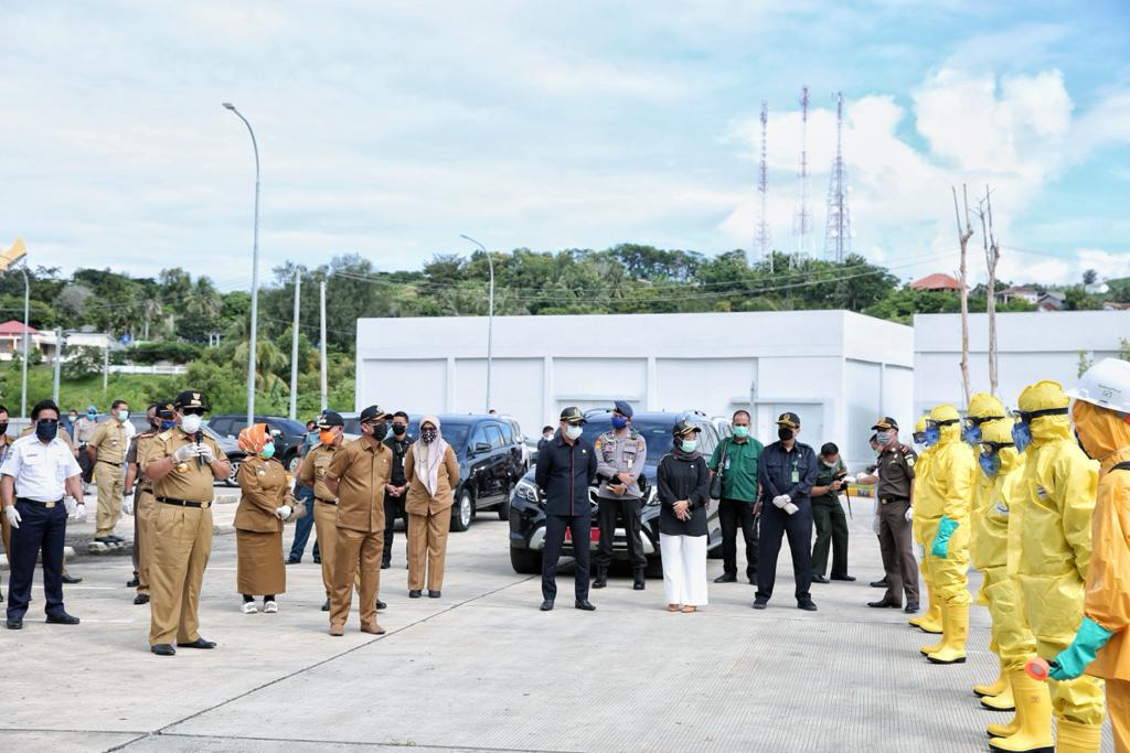 Gubernur juga memberi spirit para petugas. “Kita bekerja untuk menyelamatkan bangsa dan daerah. Tetapi juga kita harus dalam keadaan selamat. Terus jaga semangat agar selalu sehat,” ujar Gubernur.