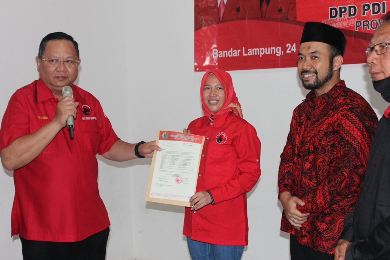 Surat tersebut diserahkan langsung oleh ketua DPD PDI-Perjuangan Provinsi Lampung Sudin, SE di kantor DPD PDI-P provinsi setempat, Jumat (24/7/2020).