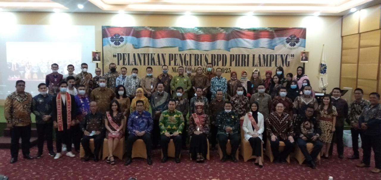 Badan Pimpinan Pusat Perhimpunan Hotel & Restoran Indonesia (BPP-PHRI) laksana pelantikan kepada Badan Pimpinan Daerah Perhimpunan Hotel & Restoran Indonesia (BPD-PHRI) Lampung, masa bakti 2020-2025 di Hotel Bukit Randu, Bandarlampung, Kamis (10/12/2020).