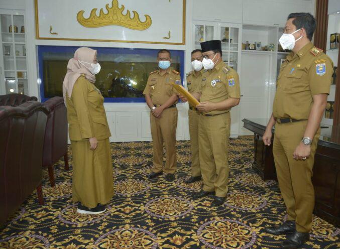 Kota Metro,- (BN.Net) Walikota Metro didampingi Wakil Walikota Metro, Plt. Sekda Kota Metro dan Kepala BKPSDM Kota Metro, serahkan Surat Perintah Pelaksana Tugas (Plt) Kepala Dinas Pendidikan dan Kebudayaan Kota Metro kepada Puspita Dewi jabatan Sekretaris Dinas Dikbud Kota Metro.Berlangsung di Ruang Kerja Walikota Metro, Selasa (23/03).
