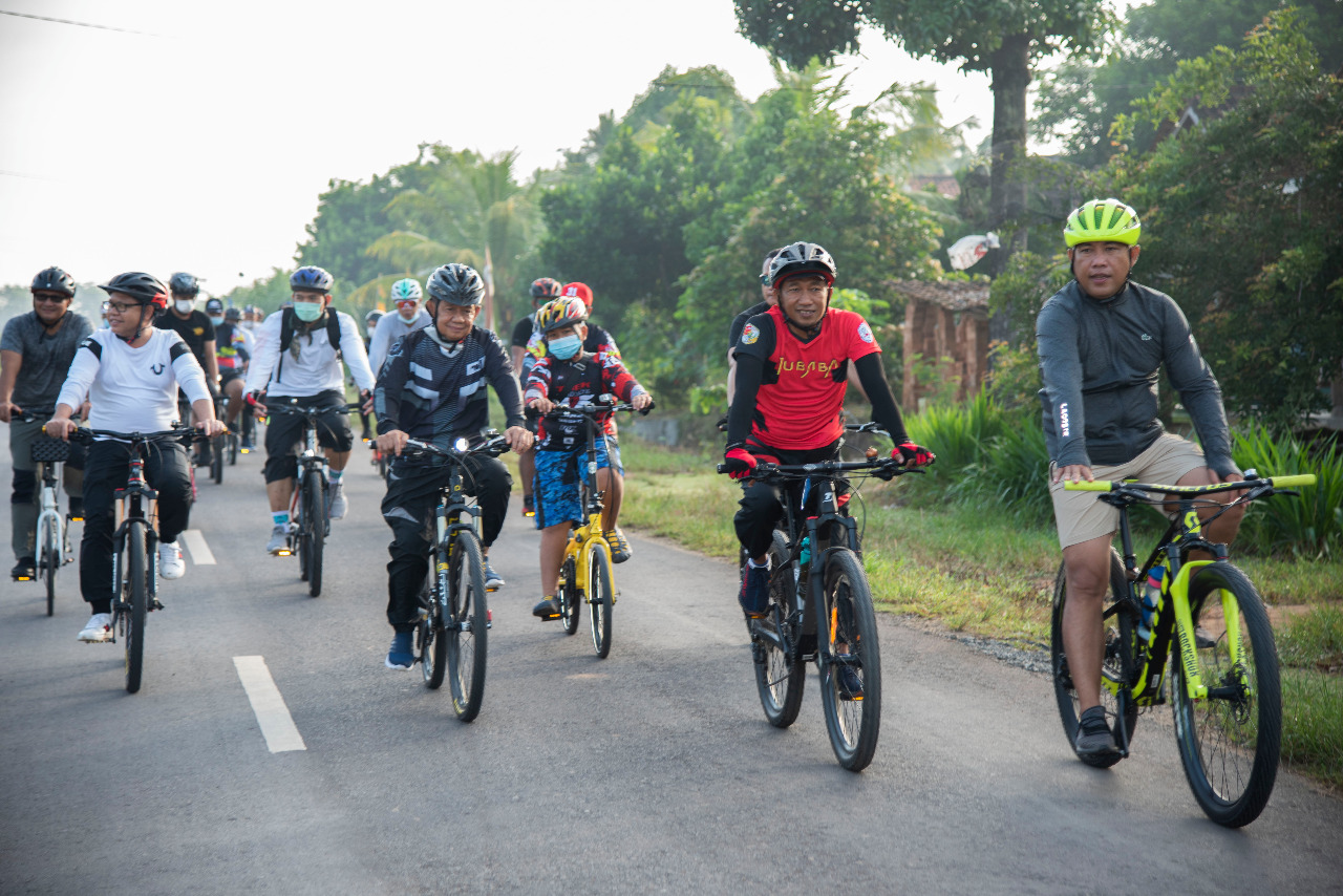 Tulang Bawang Barat,- (BN.Net) Bupati Tulang Bawang Barat Umar Ahmad. SP melakukan gowes bersama rombongan Gowes Ki Hadjar yang beranggotakan keluarga besar Dinas Pendidikan dan Kebudayaan Provinsi Lampung secara rutin melakukan gowes keliling kab/kota dalam rangka membangun kekompakan bagi anggotanya dan merajut silahturahmi kepada masyarakat dan Pejabat Pemerintah di kab/kota sebagai bentuk membuka ruang sinergitas menuju Lampung Berjaya Berlangsung Tulang Bawang Barat. Jum’at (02/04/2021).