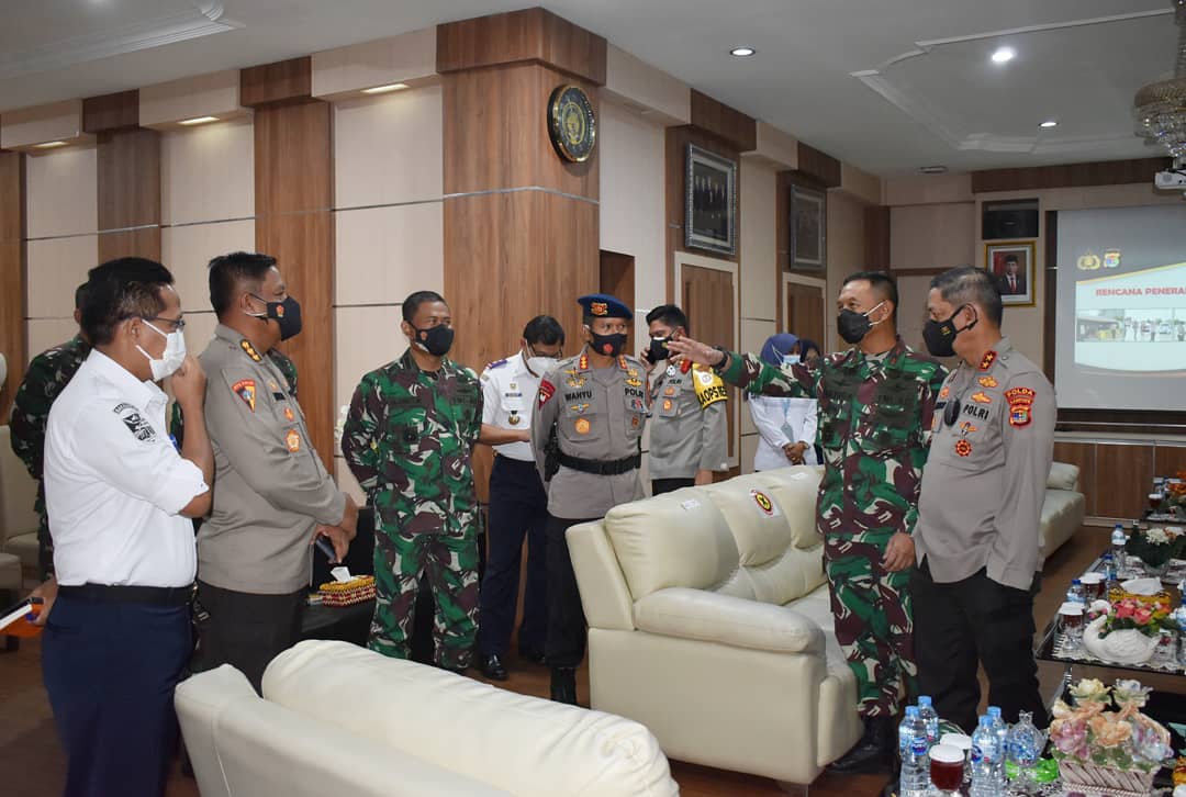 Lampung Selatan,- (BN.Net) Danrem 043/Gatam Brigjen TNI Drajad Brima Yoga, S.I.P., M.H bersama Kapolda Lampung Inspektur Jenderal Hendro Sugiatno adakan rapat koordinasi di kantor ASDP pelabuhan Bakauheni Lampung Selatan, terkait di tetapkan pemerintah Pemberlakuan Pembatasan Kegiatan Masyarakat (PPKM) darurat pulau Jawa dan Bali, Selasa 06/07/2021.