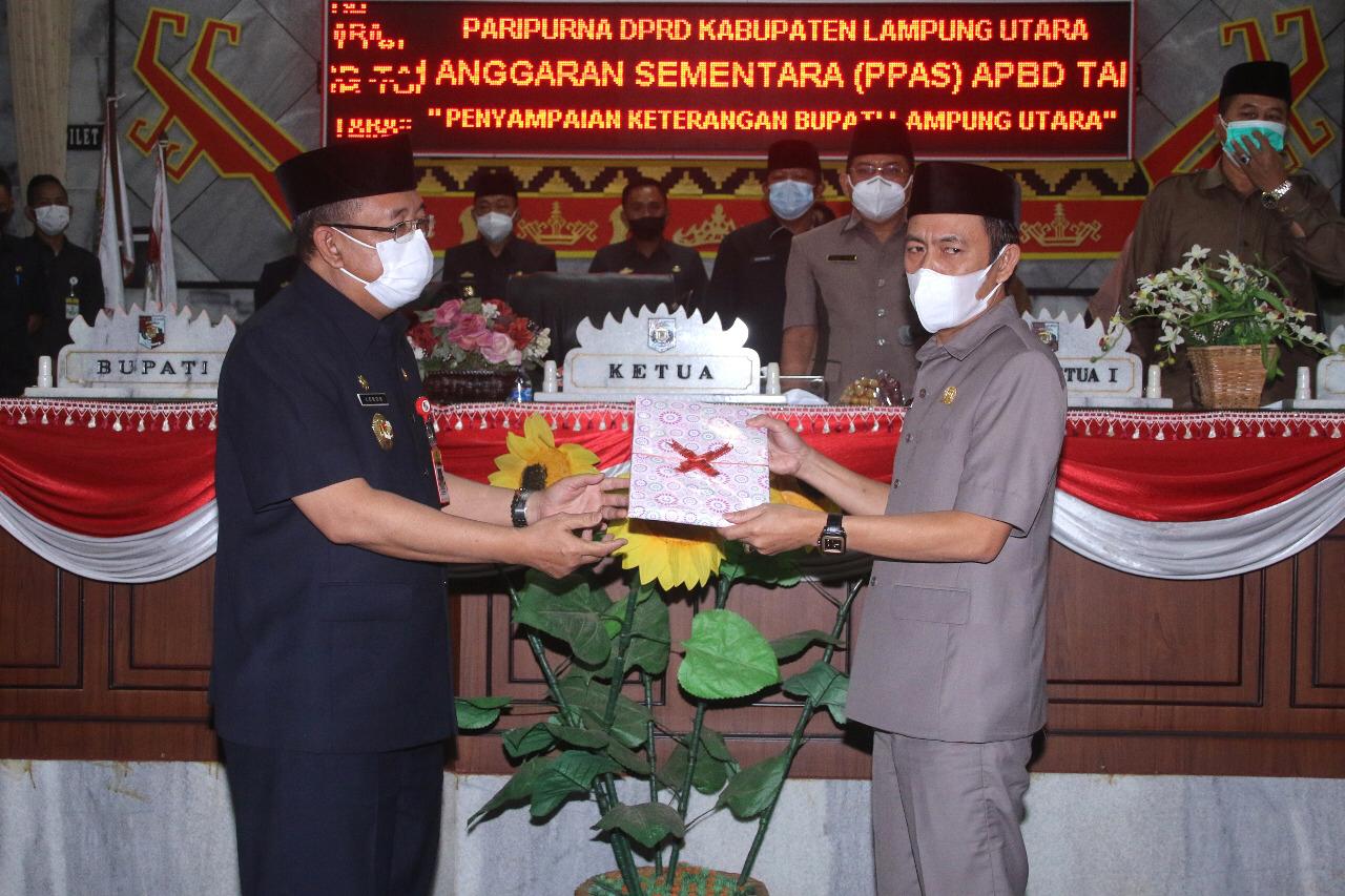 Pada paripurna itu juga dilakukan Penyerahan secara resmi bahan-bahan KUA-PPAS dari Sekda Lampura kepada Ketua DPRD Lampura Romli, A.Md.