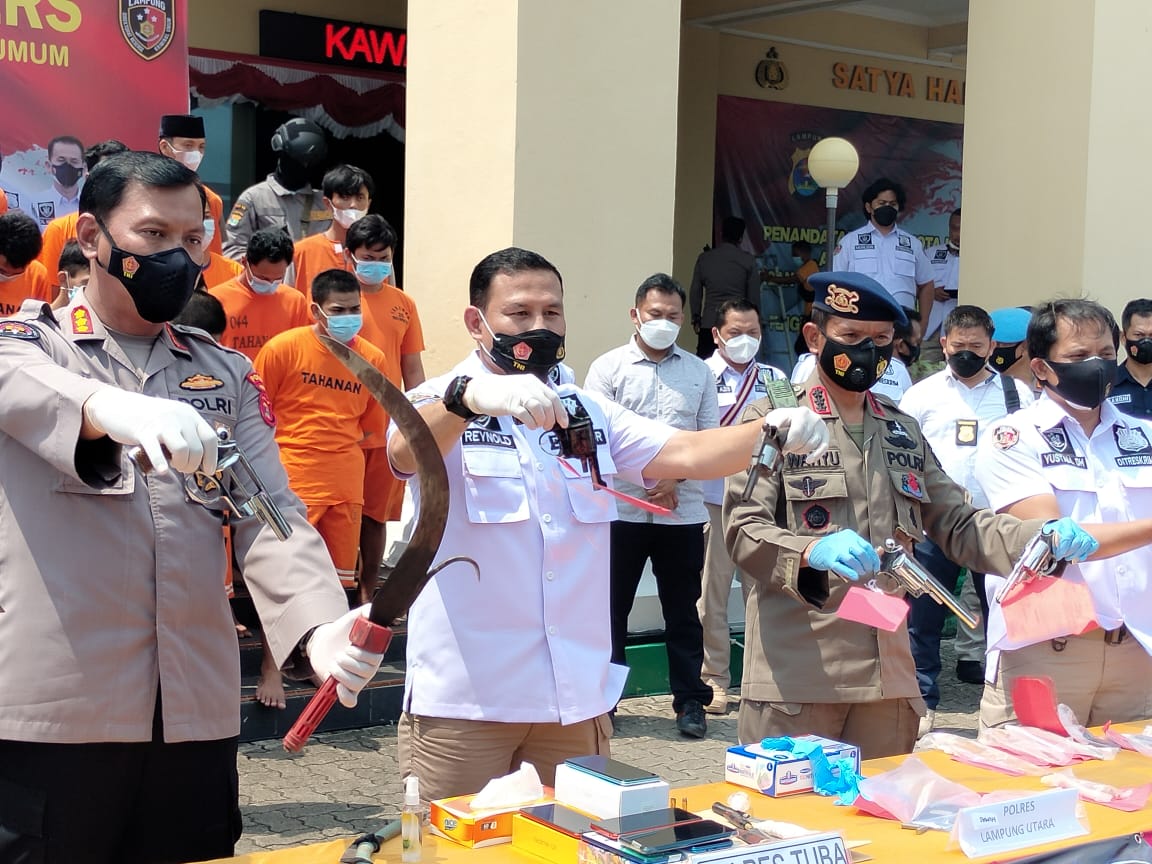 Menurutnya, dari tanggal 10 Agustus sampai 7 September 2021, petugas Polda Lampung berhasil mengungkap 99 kasus yang terdiri dari 14 kasus Curanmor, 58 kasus Curat, 24 kasus Curas, 3 kasus senpi, dan 2 kasus pembunuhan serta berhasil mengamankan 153 orang tersangka dan barang bukti berupa 38 unit motor, 39 unit handphone, 8 pucuk senjata api, 31 butir amunisi, dan 1 buah kunci T.