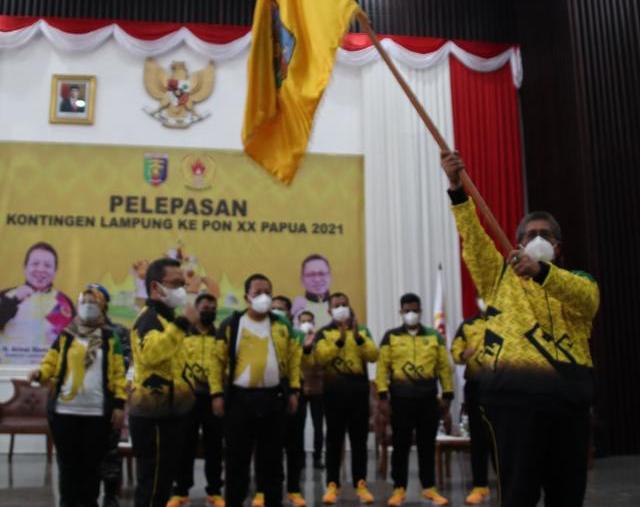 “Kontingen Lampung atlet PON XX di Papua secara resmi saya lepas. Selamat berjuang dan Allah bersama kita,” pungkas Gubernur Arinal. (Dinas Kominfotik Provinsi Lampung)