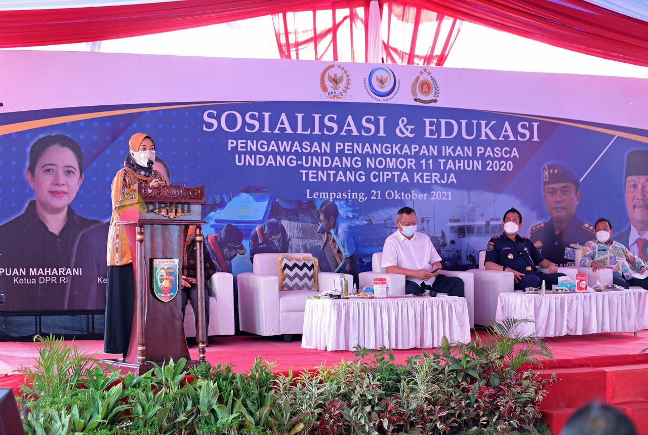 Bandar Lampung,- (BN.Net) Wakil Gubernur Lampung Chusnunia Chalim membuka acara sosialisasi dan edukasi sanksi administratif bidang pengawasan sumber daya kebutuhan dan perikanan, di Pelabuhan Pelelangan Lempasing, Kamis (21/10)