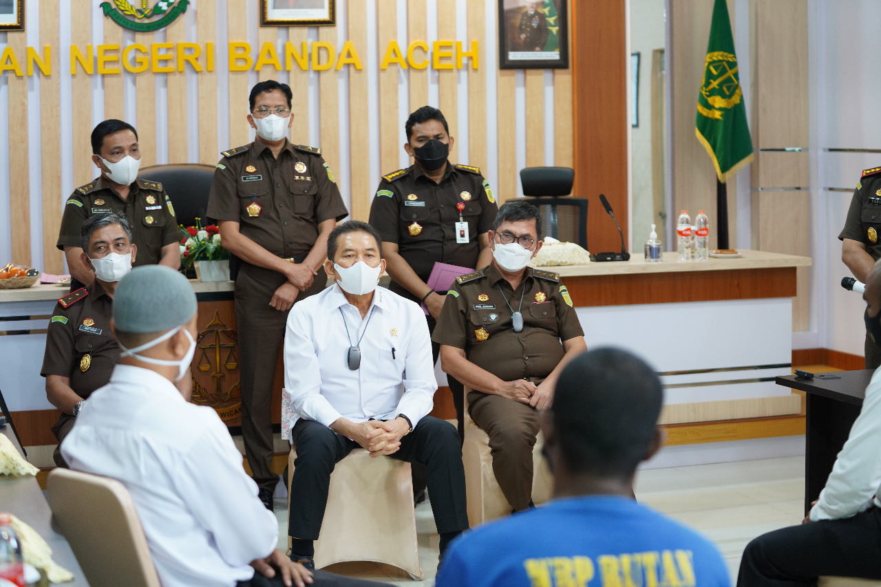 Jaksa Agung pada kesempatan tatap muka dengan para Tersangka, Korban, penyidik dan tokoh masyarakat setelah diberikan Penghentian Penuntutan Berdasarkan Keadilan Restoratif menyampaikan bahwa kehadiran Jaksa Agung ke wilayah hukum Kejaksaan Tinggi Aceh dalam rangka melihat secara langsung kinerja dan kondisi seluruh jajaran Adhyaksa dan kantor Kejaksaan di wilayah Aceh.