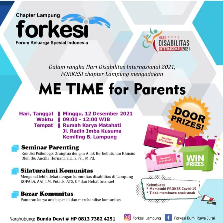Kota Metro,- (BN.Net) Forum Keluarga Spesial Indonesia (Forkesi) menggelar beragam acara dalam rangka memperingati Hari Disabilitas Internasional pada Minggu (12/12/2021) mendatang di Rumah Karya Matahati Jl. Radin Imba Kusuma Kemiling, Bandar lampung.