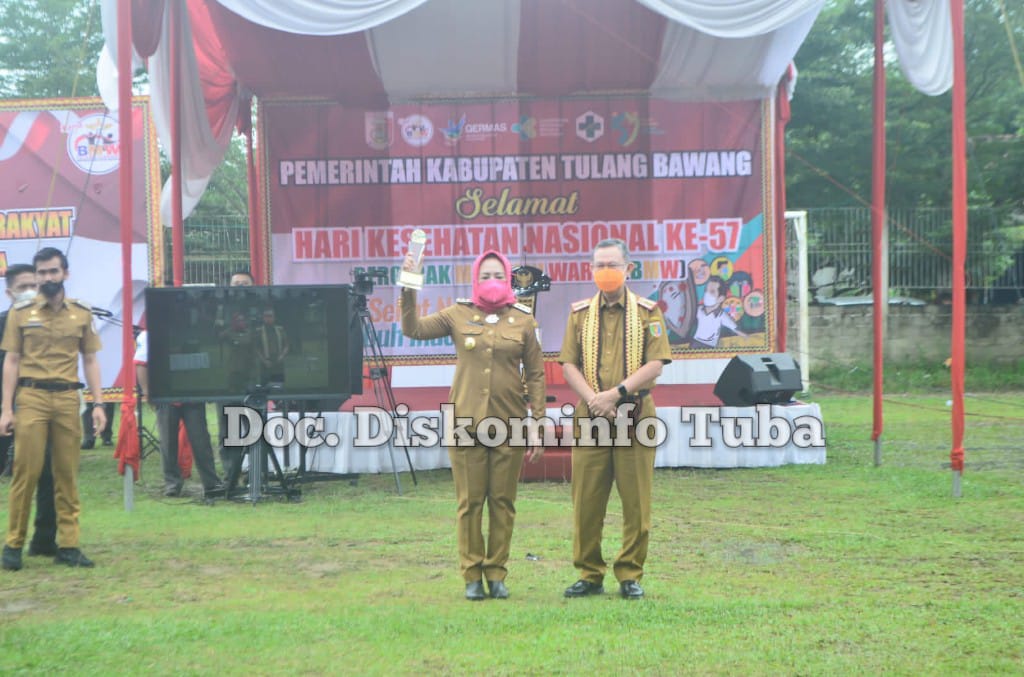 Tulang Bawang,- (BN.Net) Peringatan Hari Kesehatan Nasional (HKN) ke-57 di kabupaten Tulangbawang dengan tema “Bergerak Melayani warga untuk sehat Negeriku, Tumbuh Indonesiaku”, Di Lapangan Tri Tunggal Jaya, Kecamatan Banjar Agung, Kabupaten Tulang Bawang, Selasa, (7/12/2021).