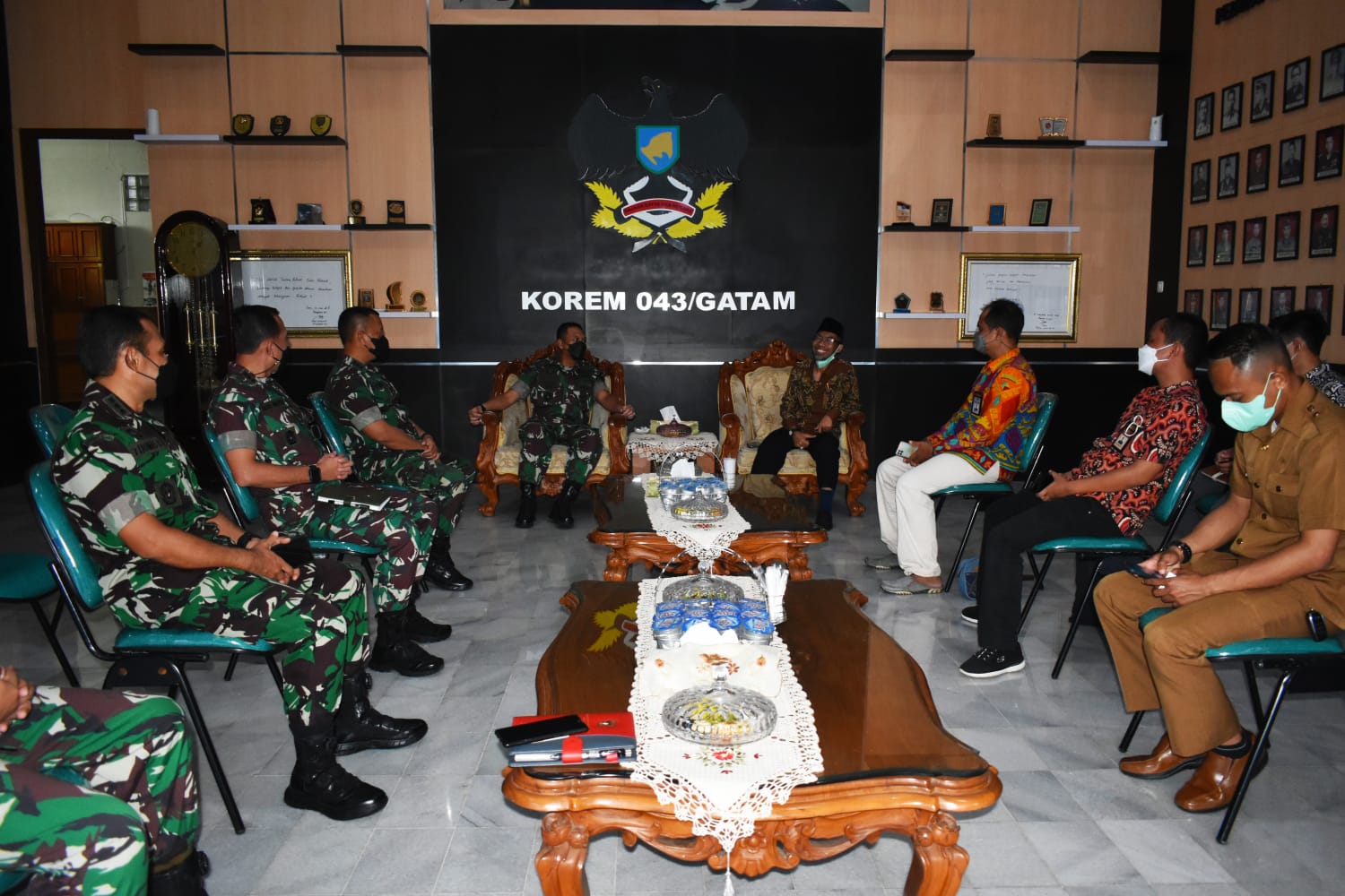 Rombongan terdiri dari 6 orang,KH. Ir. Abdul Hakim, MM (Anggota DPD RI), Gino Fanoli, M.Pd (Kepala Kantor Perwakilan DPD RI Provinsi Lampung), Nurhandoyo (staf DPD RI), Larto Darmawan (staf DPD RI), Oskar Saprudin (staf DPD RI), Afif (tim media DPD RI), disambut oleh Komandan Korem 043/Gatam didampingi Kepala Staf Korem 043/Gatam Kolonel Inf Dendy Suryadi, S.H., M.H, Kasi Intel Kasrem 043/Gatam Kolonel Inf. Agus Wahyudi Irianto, S.I.P., Kasi Ops Kasrem 043/Gatam Kolonel Inf. Slamet Winarto, S.E. dan Kasi Ter Kasrem 043/Gatam Kolonel Kav. Thomas Rudyanto, S.H.di ruang Loby Makorem 043/Gatam.