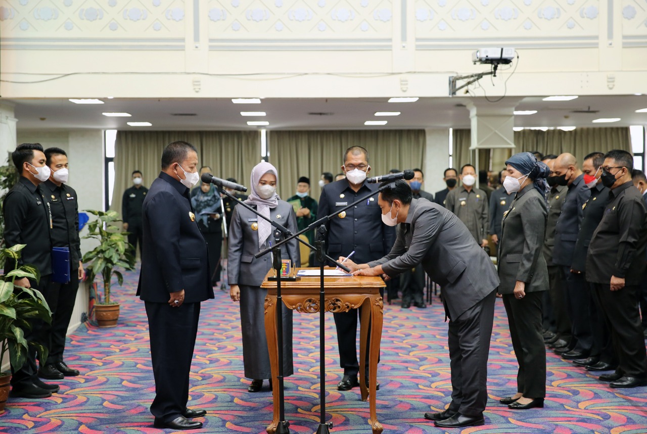 Bandar Lampung,- (BN.Net) Gubernur Arinal Djunaidi mengambil sumpah dan melantik 65 Pejabat di lingkungan Pemerintah Provinsi Lampung, di Balai Keratun, Kamis (16/6).