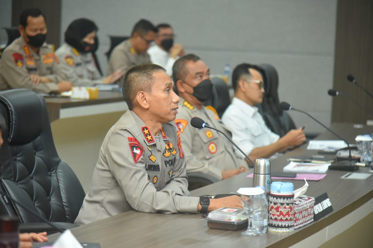 Kegiatan video conference diikuti oleh Wakapolda Brigjen pol subiyanto, Karo OPS Kombes Amiludin R, Dir Krimum Kombes Reynold, Dir Krimsus Kombes Arif Rahman, Dir Narkoba Kombes Haris, Kabid propam Kombes Sarhan, Kabid Humas Kombes Pandra.