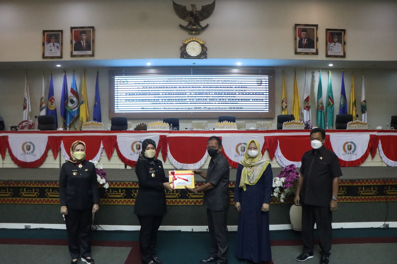 Wakil Gubernur Lampung, Chusnunia juga menyampaikan keempat Rancangan Peraturan Daerah tersebut masing-masing tentang: