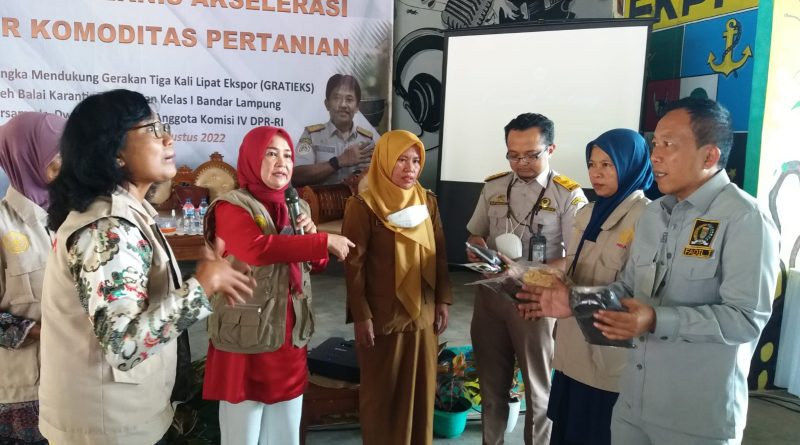Hal tersebut diungkapkannya, saat menjadi pemateri pada kegiatan Bimbingan Teknis Akselerasi Ekspor Komoditas Pertanian, Dalam rangka Mendukung Gerakan Tiga Kali lipat (GRATIEKSI) Oleh Balai Karantina Pertanian Kelas 1 Bandar Lampung Bersama Anggota Komisi IV DPR RI Dwita Ria Gunadi. Senin (08/08/2022)