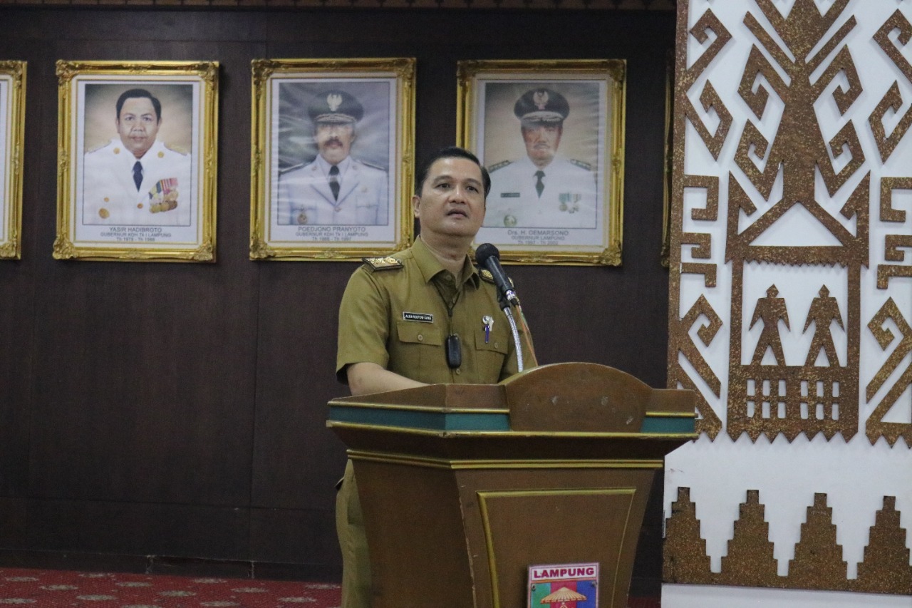 Hadir mendampingi ketua Dekranasda, Kepala Perpustakaan Khaerudin, Sub Koordinator Tata Usaha Reta Surya dan Seniman Asal Lampung Anshori Djausal. (Dinas Kominfo dan Statistik Provinsi Lampung)