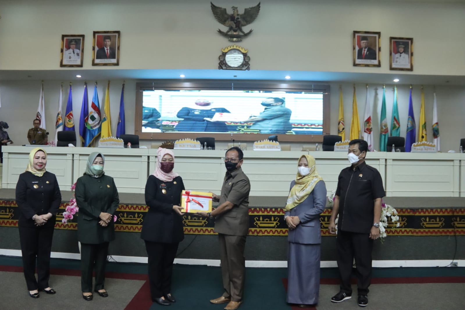Hadir dalam rapat paripurna, Ketua DPRD Provinsi Lampung Mingrum Gumay, anggota DPRD Provinsi Lampung, anggota Forkopimda Provinsi Lampung, serta Pejabat Pimpinan Tinggi Pratama dilingkungan Pemerintah Provinsi Lampung.(Dinas Kominfotik Provinsi Lampung)