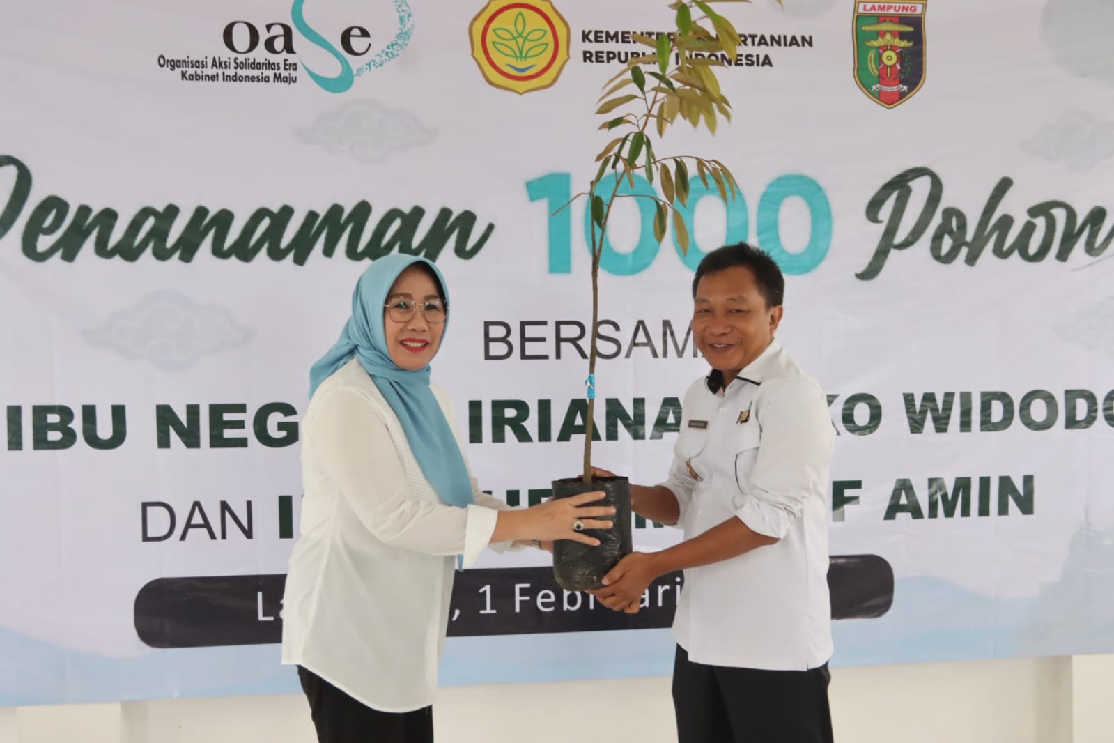 Lampung Selatan,- (BN.Net) Gubernur Lampung diwakili oleh Asisten Perekonomian & Pembangunan, Kusnardi, melakukan Penanaman 1000 Pohon Buah bersama Ibu Negara Iriana Joko Widodo, Ibu Wury Ma’ruf Amin serta Ibu OASE KIM, secara Hybrid, di PKK Agropark Sabah Balau Lampung Selatan, Rabu (1/2/23).