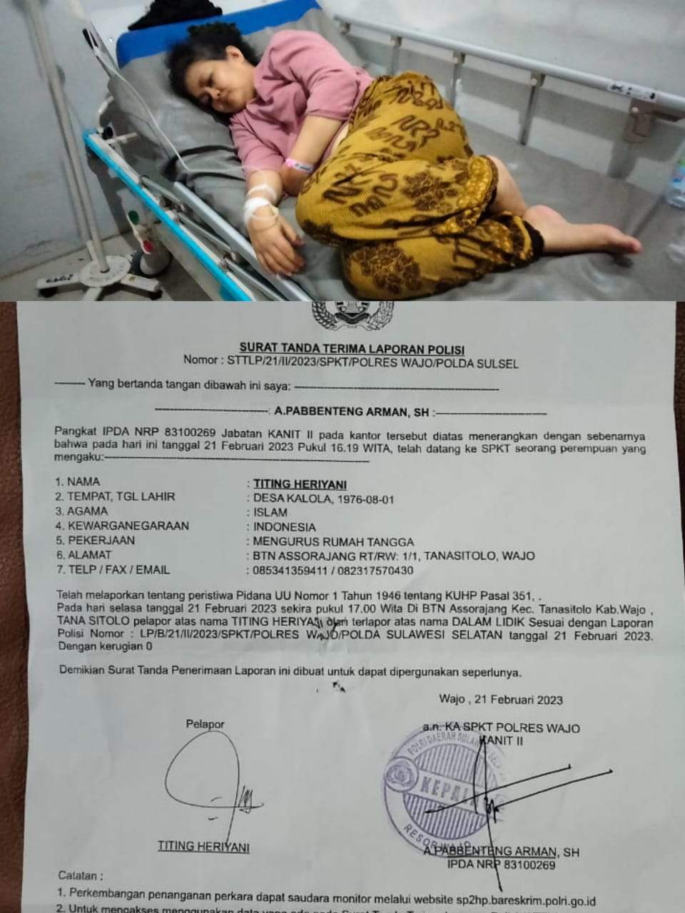 AKP Theodorus Echeal Setiyawan membenarkan kejadian tersebut dengan masuknya laporan di mapolres Wajo nomor LP/B/21/II/ 2023/SPKT/POLRES WAJO/ POLDA SULAWESI SELATAN, atas nama Titin Heriyani.