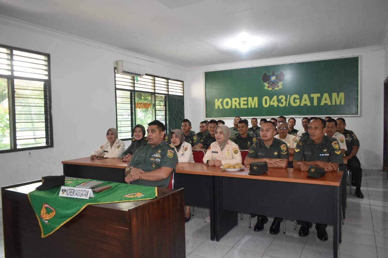 Adapun tema yang diambil:” Deteksi Dini Kangker Prostat Dan Tata Laksananya ” dan dihadiri juga Kapten Inf Nizar (Perwira Korem 043/ Gatam), Lettu Caj Olivia (Ka Infolahta Korem 043/ Gatam), Bintara, Tamtama dan PNS Korem 043/ Gatam.