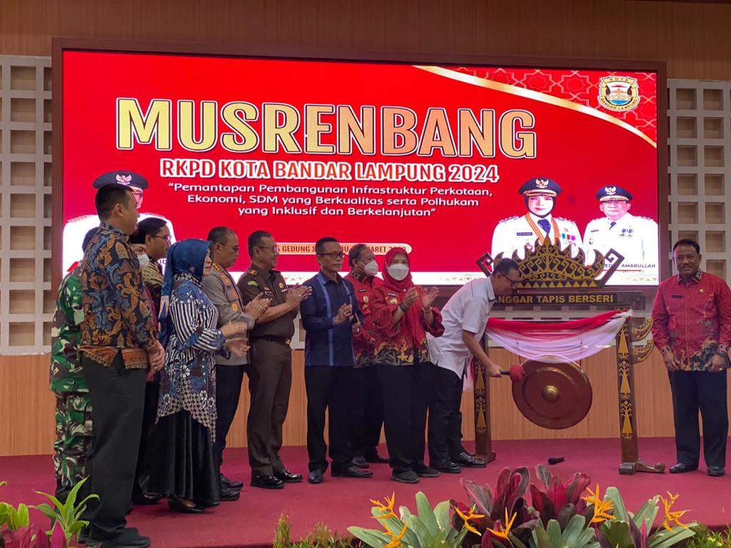 Bandar Lampung,- (BN.Net) Mewakili Gubernur Lampung, Sekretaris Daerah Provinsi Lampung Fahrizal Darminto membuka Musyawarah Perencanaan Pembangunan (Musrenbang) Recana Kerja Pembangunan Daerah (RKPD) Kota Bandar Lampung Tahun 2024. Kegiatan ini diselenggarakan di Aula Semergo Kota Bandar Lampung, Kamis (09/03/2023).