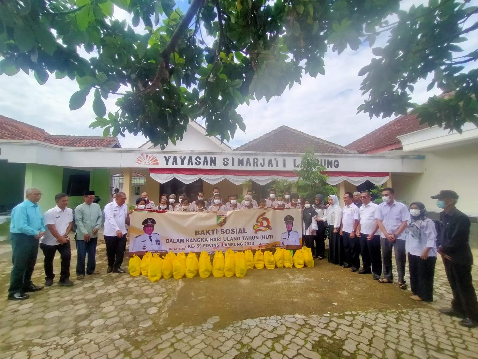 Pesawaran,- (BN.Net) Memperingati hari jadi Provinsi Lampung ke-59, Pemerintah Provinsi Lampung mengadakan acara bhakti sosial pembagian bantuan sebanyak 50 paket sembako kepada warga Pemerlu Pelayanan Kesejahteraan Sosial (PPKS) di UPTD Mardiguna Desa Hurun Kabupaten Pesawaran, dan Lembaga Lembaga Kesejahteraan Sosial (LKS) Sinar Jati, Kemiling Bandar Lampung, Kamis (9/3/2023).
