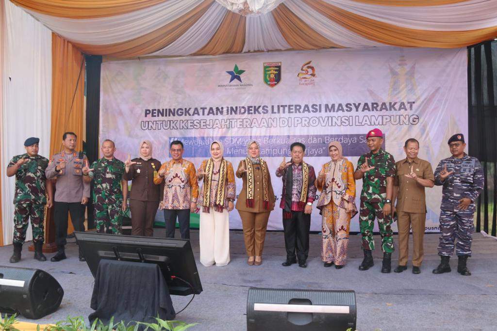 Festival peningkatan indeks literasi masyarakat untuk kesejahteraan di provinsi lampung dengan tema “Mewujudkan SDM Yang Berkualitas Dan Berdaya Saing Menuju Lampung Berjaya” yang dipimpin oleh bunda lisetaris prov.lampung Ibu.Riana Sari Arinal.