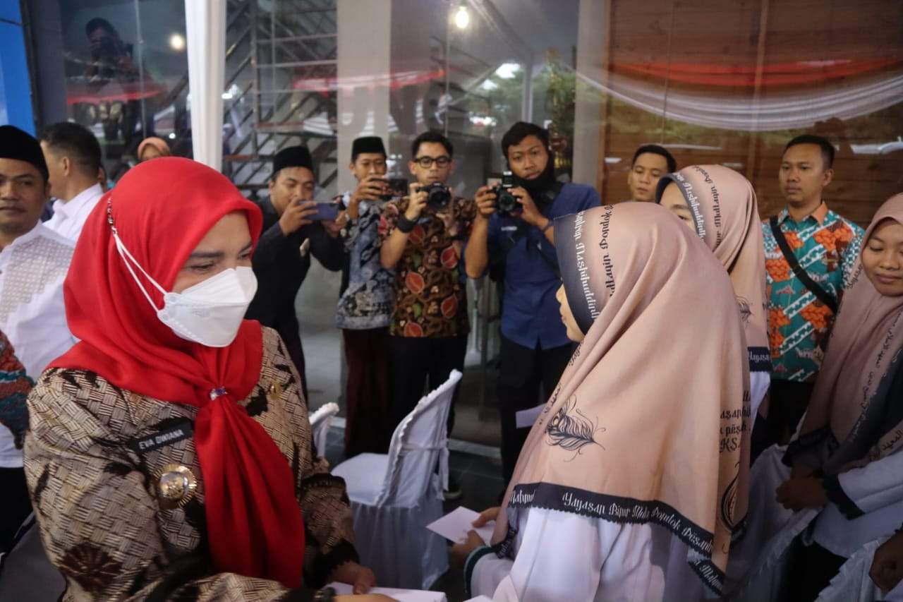 Selain doa bersama, PWI Lampung juga turut memberikan santunan kepada puluhan anak yatim dan warakawuri.
