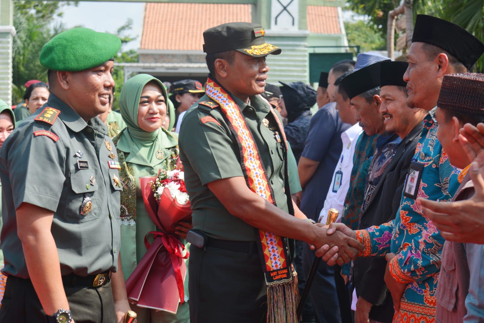 Setibanya Danrem 043/Gatam dan rombongan langsung disambut Dandim 0427/Wk Letkol Inf Carluly Rudi Jatmiko beserta istri dengan Tari Sembah dan pengalungan selendang tapis serta pemberian Hand Bucket.