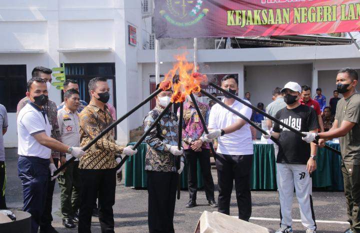 “Jadi hari ini dengan disaksikan oleh selurh Forkopimda dan para pihak ikut menyaksikan dan pembakaran BB.” Kata dia.
