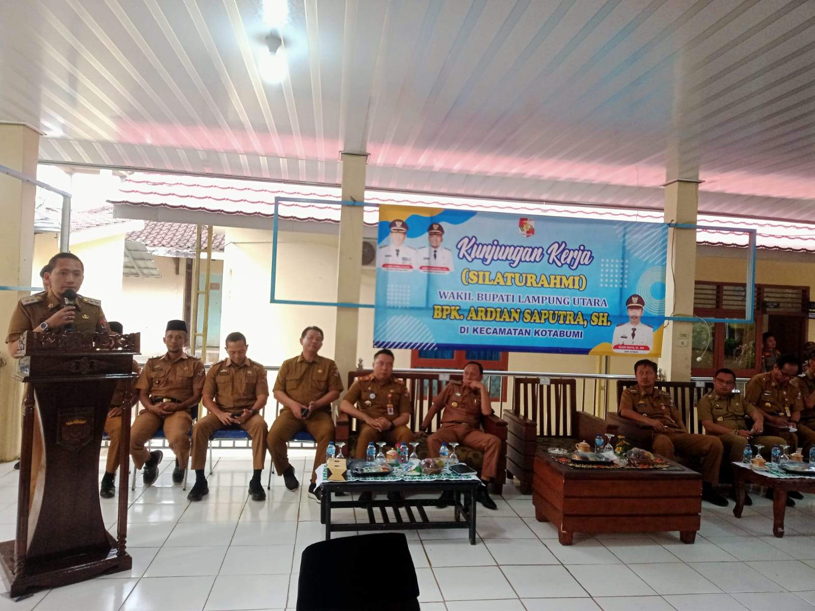 Wabup Ardian Saputra di dampingi Asisten I Mankodri, Kepala Dinas Sosial, Gadriyanto Abung dan jajarannya, Kepala Badan BPRD Lampura Desyadi, Kepala Dinas Lingkungan Hidup, Wahap dan jajarannya, Sekretaris Kominfo M. Luzirwan, Sekretaris PUPR, Kabag Kesra Apriyadi, Kabag Protokol Habibie, Camat Kotabumi Nujum Masya, Forkopincam, Lurah/Kades se-Kecamatan Kotabumi