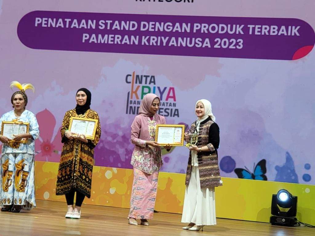 Melalui produk-produk bidang kerajinan kriya yang dibina Dekranasda Provinsi Lampung meraih juara 1 penataan stan dengan produk terbaik pameran Kriya Nusa 2023.