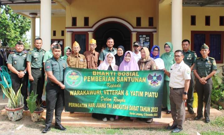 Dikesempatan tersebut Danrem 043/Gatam, menjelaskan Pemberian santunan dan paket sembako ini dalam rangka memperingati Hari Juang TNI AD Tahun 2023, sebagai wujud kepedulian TNI terhadap masyarakat untuk memberikan sumbangsi kepada sesama membutuhkan, selain dari pada itu kegiatan ini juga bertujuan untuk membangun soliditas dan sinergitas prajurit TNI AD dengan komponen masyarakat lainnya.
