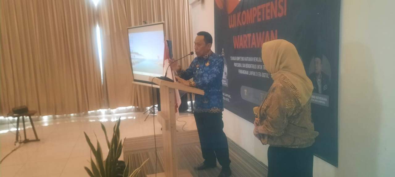 Bandarlampung,- (BN.Net) Pj Gubernur Lampung, Samsudin diwakili Staf Ahli Gubernur Lampung, Bidang Kemasyarakatan, Intizam membuka uji kompetensi wartawan (UKW) yang digelar Jaringan Media Siber Indonesia (JMSI) Lampung dengan lembaga uji Dr. Moestopo.