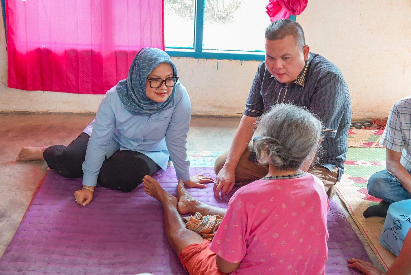 Mba Ela sapaan akrabnya mendatangi ibu Daimatun (64) warga dusun 3 desa kedaton satu kecamatan batanghari nuban kabupaten lamtim yang sakit lumpuh selama bertahun-tahun, kedatangan Ela Siti Nuryamah bakal calon bupati lamtim tersebut tampak di terima dengan senang hati dari pihak keluarga. “Ibu saya sudah sakit selama bertahun-tahun dan lumpuh seperti ini sudah tidak bisa di ajak ngomong (berinteraksi).Kami senang ibu ela datang kerumah menjenguk dan memberikan perhatian ibu saya, kami doakan beliau jadi bupati lamtim,” terang Yati (42) anak dari mbah Daimatun.