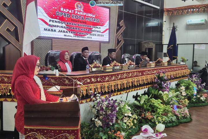 Kota Metro,- (BN.Net) Rapat Paripurna Dewan Perwakilan Rakyat Daerah (DPRD) Kota Metro tentang pengucapan sumpah janji ketua DPRD Kota Metro masa jabatan tahun 2024-2029, kegiatan berlangsung di ruang sidang DPRD kota setempat, Senin (14/10).