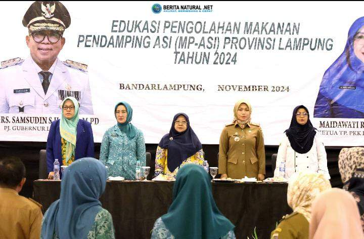 Bandarlampung,- (BN.Net) Pj. Ketua TP PKK Provinsi Lampung, Maidawati Retnoningsih Samsudin, membuka Bimbingan Teknis Edukasi Pengolahan Makanan Pendamping ASI Provinsi Lampung, di Hotel Horison, Selasa (5/11/2024).