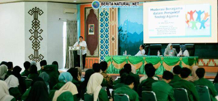 Bandarlampung,- (BN.Net) Wakil Rektor (WR) II Universitas Islam Negeri (UIN) Raden Intan Lampung (RIL) Dr Safari Daud MSosI memberikan materi tentang Landasan Teologis Moderasi Beragama dalam acara Sosialisasi Penguatan Moderasi Beragama Bagi Mahasiswa.