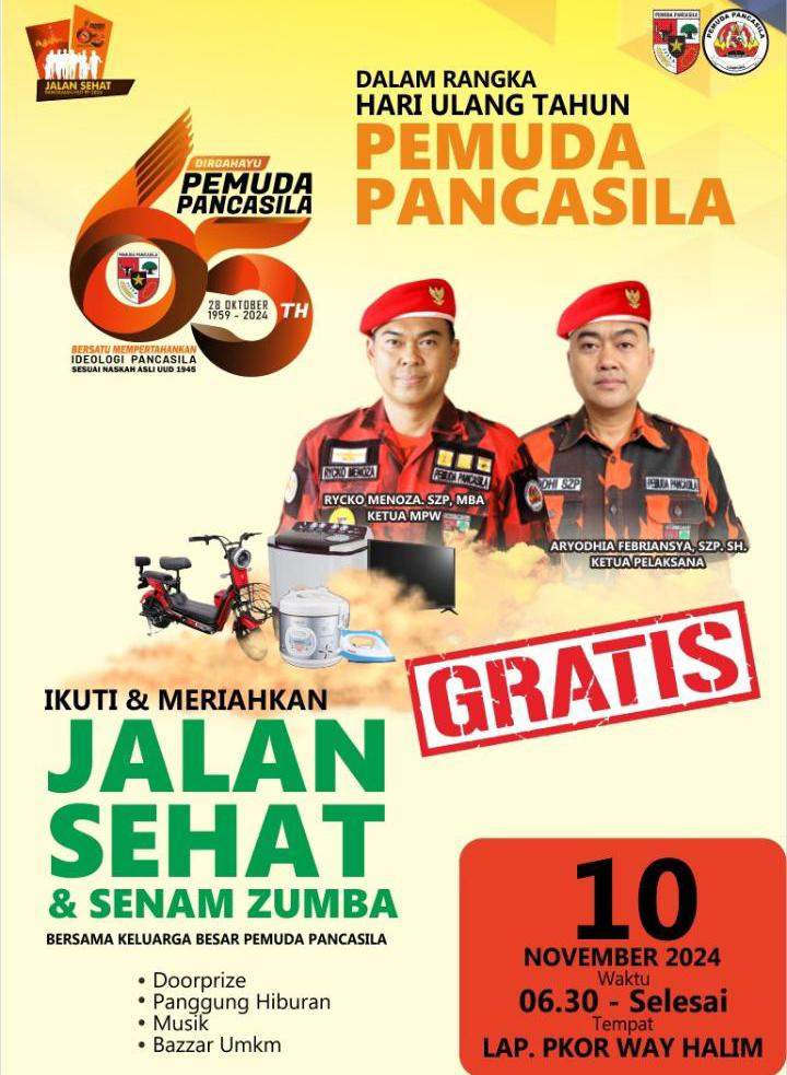 Selain itu, kak Yodhi juga mengajak masyarakat Khususnya Bandar Lampung untuk dapat mengikuti acara jalan sehat HUT Pemuda Pancasila.