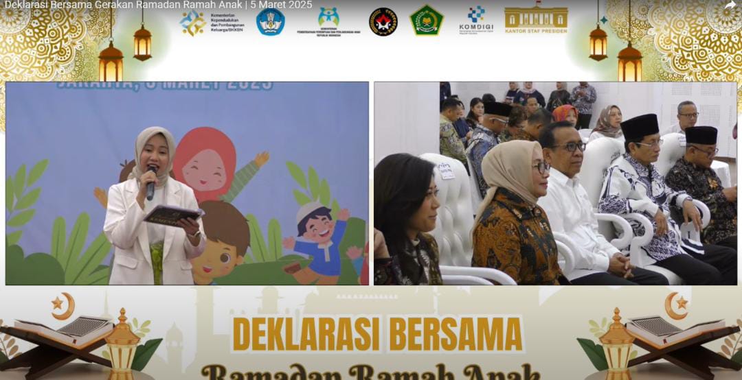 Kegiatan diawali dengan pembacaan Narasi Deklarasi Bersama Gerakan Ramadan Ramah Anak yang kemudian dilanjutkan dengan penandatanganan Deklarasi bersama oleh Menteri Koordinator Pembangunan Manusia, Menteri Pemberdayaan Perempuan dan Perlindungan Anak, Menteri Agama, Menteri Pendidikan Dasar dan Menengah, Menteri Komunikasi dan Digital, Menteri Kependudukan dan Pembangunan Keluarga, dan Kepala Kantor Staf Presiden.