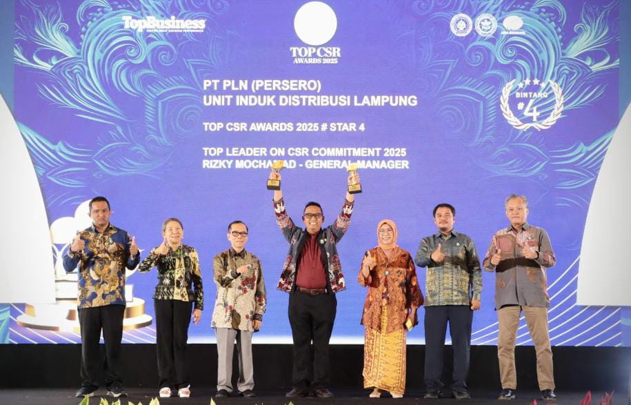 Tak hanya itu, General Manager PLN UID Lampung, Rizky Mochamad, juga dinobatkan sebagai Top Leader on CSR Commitment 2025, sebuah penghargaan bergengsi yang diberikan kepada para pemimpin yang dinilai memiliki komitmen kuat dan peran aktif dalam mendorong pelaksanaan CSR secara strategis, terukur, dan berkelanjutan.