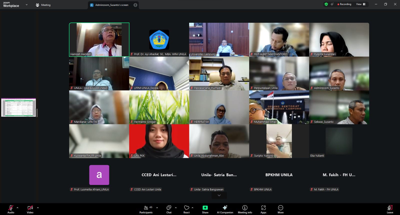 Bandarlampung, –  Dewan Pengawas (Dewas) Universitas Lampung (Unila) menggelar pertemuan koordinasi dengan pimpinan Badan Layanan Umum (BLU) Unila secara daring melalui aplikasi Zoom Meeting, pada Rabu, 27 Agustus 2025.