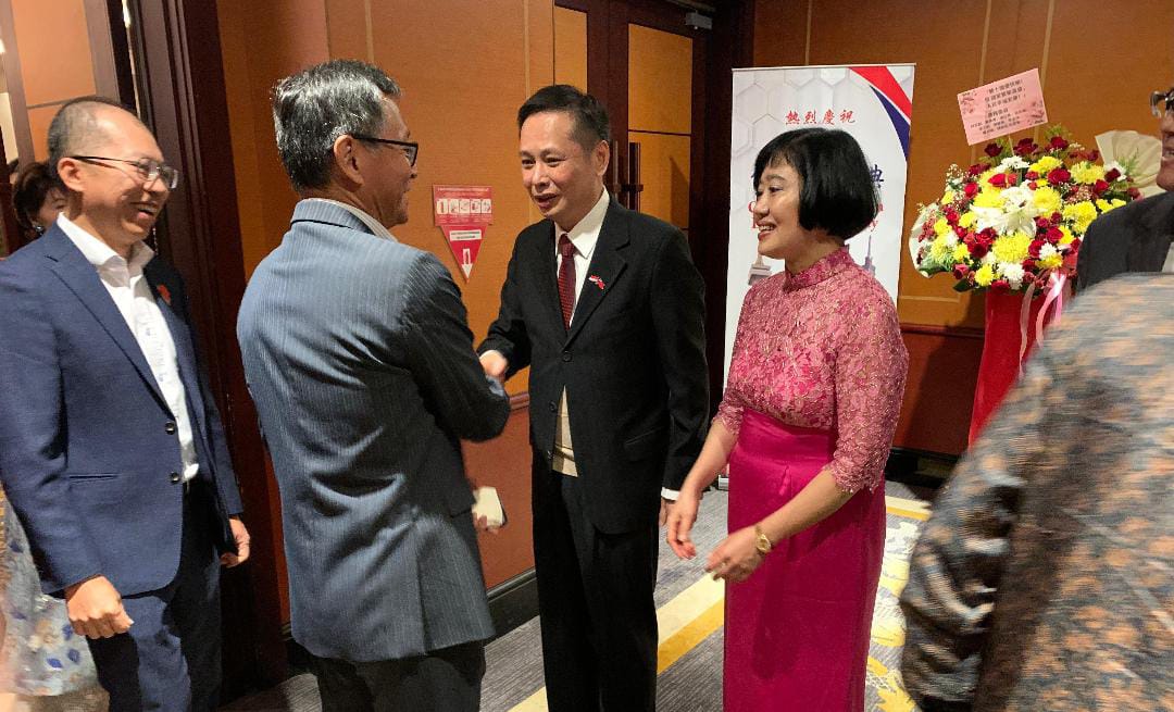 Kepala Perwakilan Kantor Ekonomi dan Perdagangan Taipei (TETO) untuk Indonesia, Bruce Hung (tengah), saat menerima para tamu undangan pada Perayaan Hari Nasional ke-114 Taiwan di Jakarta, Selasa (7/10) malam (Foto: ASS/SP)