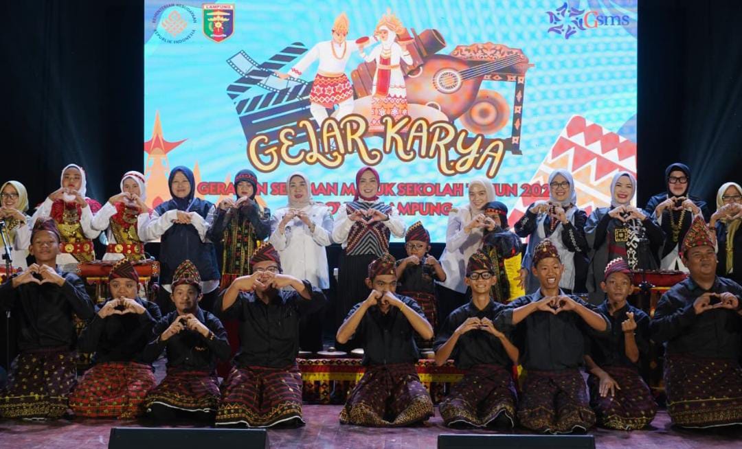 “Kami mengapresiasi setinggi-tingginya Dinas Pendidikan dan Kebudayaan Provinsi Lampung yang telah sukses menggelar karya Gerakan Seniman Masuk Sekolah (GSMS) tahun ini. Keberhasilan ini tidak lepas dari kerja keras para seniman, asisten seniman, serta para siswa yang telah menampilkan karya luar biasa,” ujarnya.