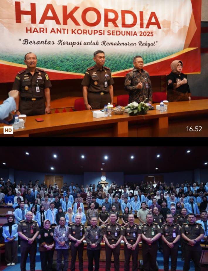 Bandarlampung, – Kejaksaan Tinggi Lampung – Dalam rangka memperingati Hari Anti Korupsi Sedunia (Hakordia) Tahun 2025, Kejaksaan Tinggi Lampung menyelenggarakan Upacara Peringatan Hakordia serta Kuliah Umum bertema “Berantas Korupsi untuk Kemakmuran Rakyat”, bertempat di Gedung Auditorium Pascasarjana Universitas Bandar Lampung pada Selasa, 9 Desember 2025.