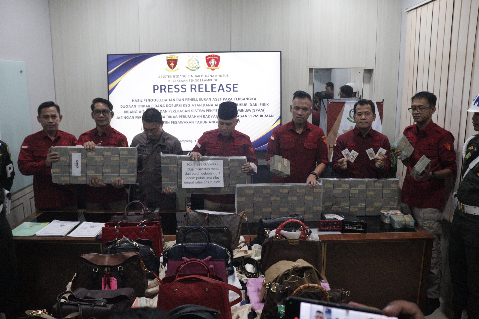 Tim Penyidik Pidsus Kejati Lampung telah melakukan kegiatan penggeledahan di beberapa tempat yaitu di wilayah Kecamatan Tanjung Karang Timur, Kecamatan Tanjung Karang Barat, Kecamatan Rajabasa, Kecamatan Kemiling, Kecamatan Gedong Tataan dan Kecamatan Way Lima, yang berkaitan dengan tindak pidana korupsi tersebut dan dari hasil penggeledahan, Tim Penyidik telah melakukan penyitaan sebagai upaya penyelamatan keuangan negara (asset recovery). Adapun rincian aset yang berhasil dilacak dan disita antara lain :