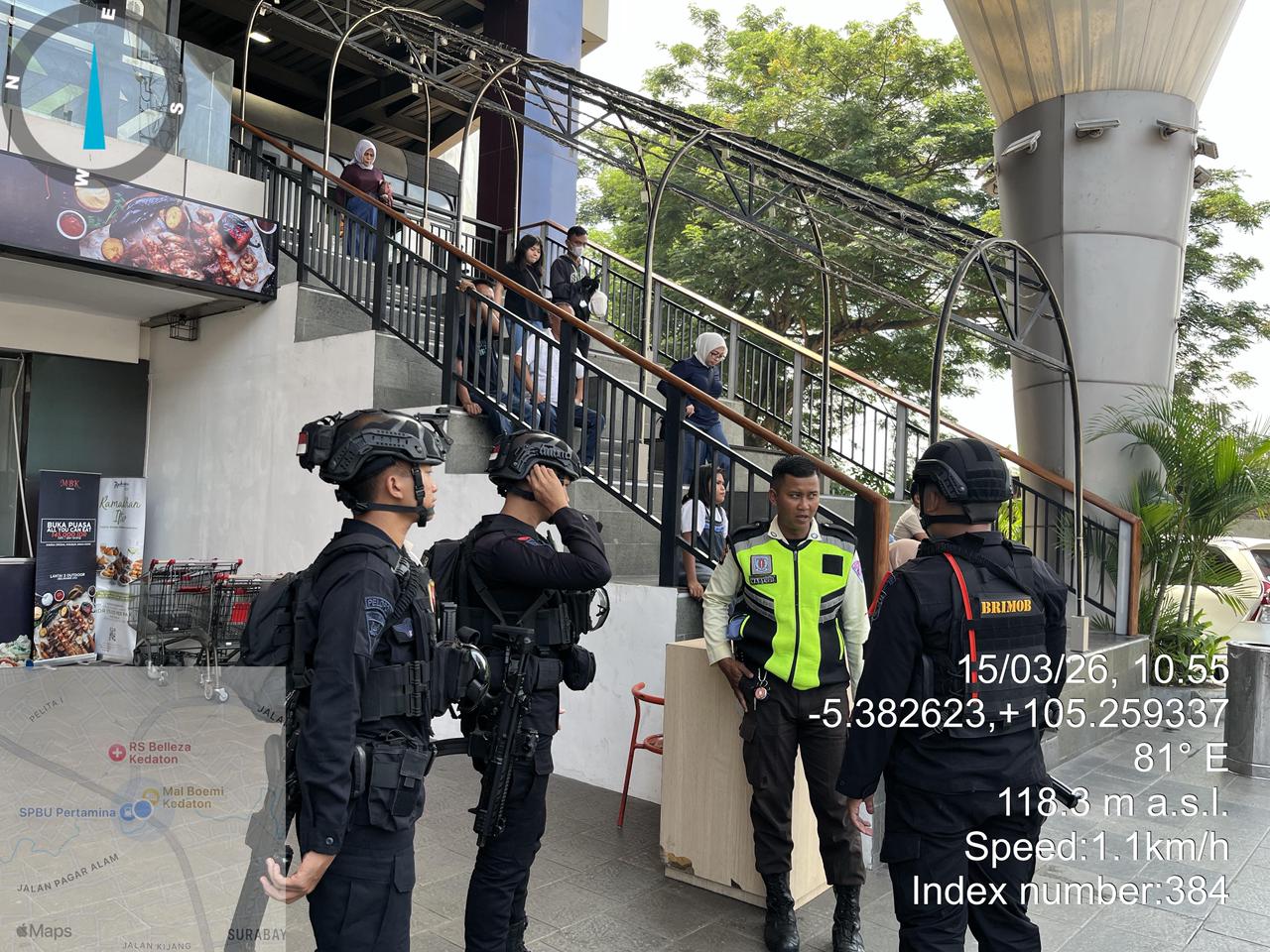 Patroli dialogis dilaksanakan di beberapa lokasi strategis yang menjadi titik keramaian masyarakat, yakni Pasar Bambu Kuning, Mall Boemi Kedaton, serta Pos Pengamanan Ramayana. Dalam kegiatan tersebut, personel Brimob melakukan pemantauan situasi keamanan, memberikan imbauan kamtibmas kepada masyarakat, serta berdialog langsung dengan pedagang dan pengunjung untuk memastikan situasi tetap aman dan kondusif.