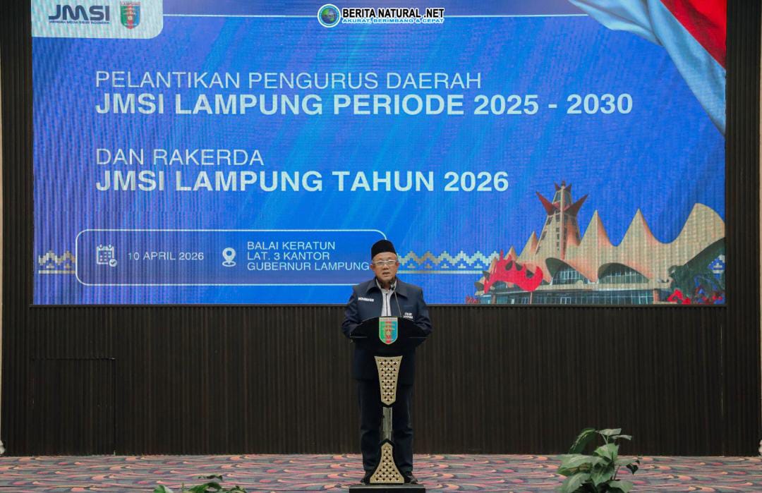 Bandarlampung, – Pengurus Daerah Jaringan Media Siber Indonesia (JMSI) Lampung periode 2025–2030 resmi dilantik di Balai Keratun Pemerintah Provinsi Lampung, Jumat (10/4/2026). Pelantikan dilakukan langsung oleh Ketua Umum JMSI Pusat Teguh Santosa dan dihadiri berbagai unsur pemerintah, organisasi pers, serta pemangku kepentingan daerah.