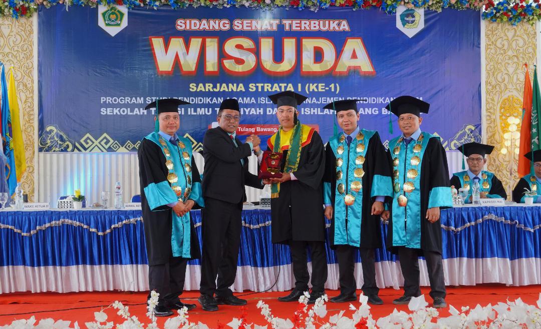 Wisuda perdana tersebut menjadi tonggak sejarah penting bagi STIT Darul Ishlah Tulang Bawang dalam mencetak generasi unggul, religius, dan siap membangun Lampung. (Dinas Kominfotik Provinsi Lampung).