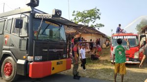 Quick Respon Brimob Lakukan Pemadaman Kebakaran di Rumah Warga Talang Tembesu.
